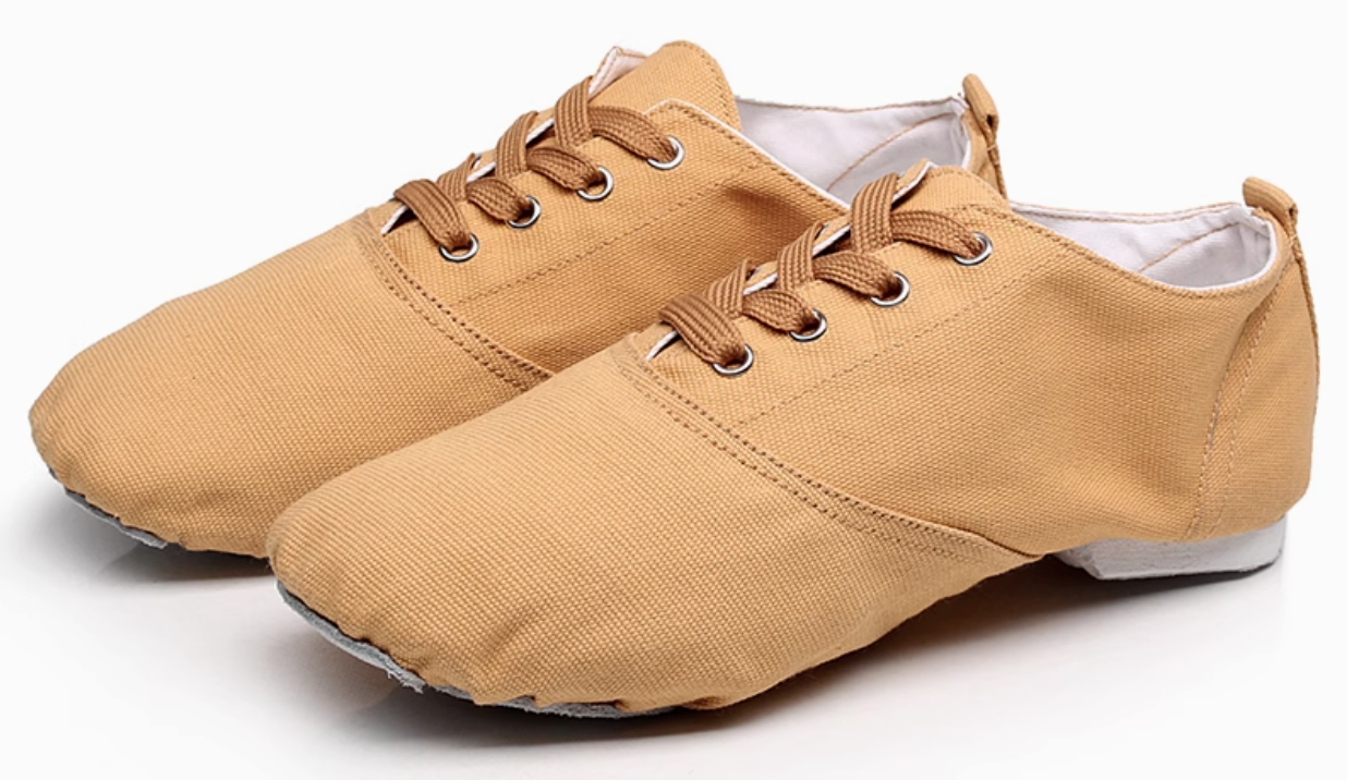 Breathable canvas jazz shoes with a soft leather anti-slip sole and lace-up design for adjustable comfort. Perfect for jazz, modern dance, gymnastics, yoga, and pilates.