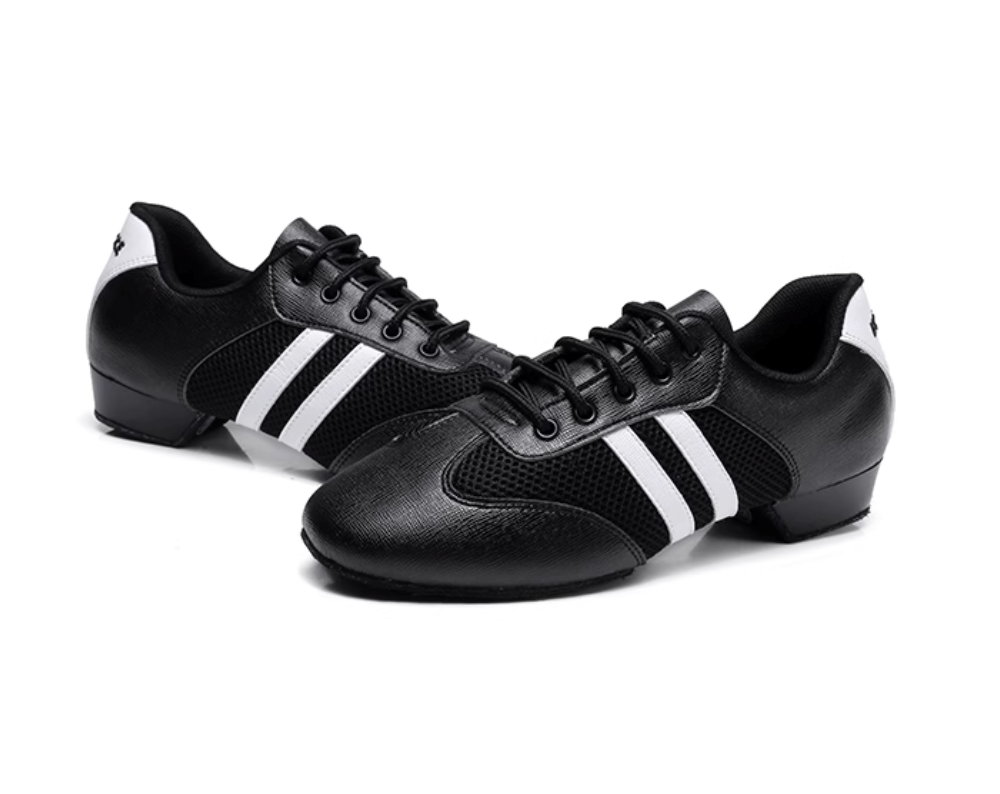 Character Dance Shoes – Black Double Strap with Two-Point Sole, Low Heel PU Latin Practice Shoes for Women