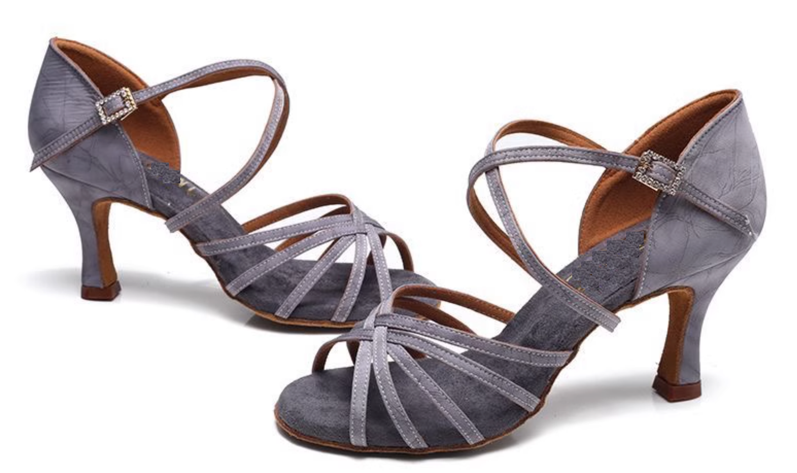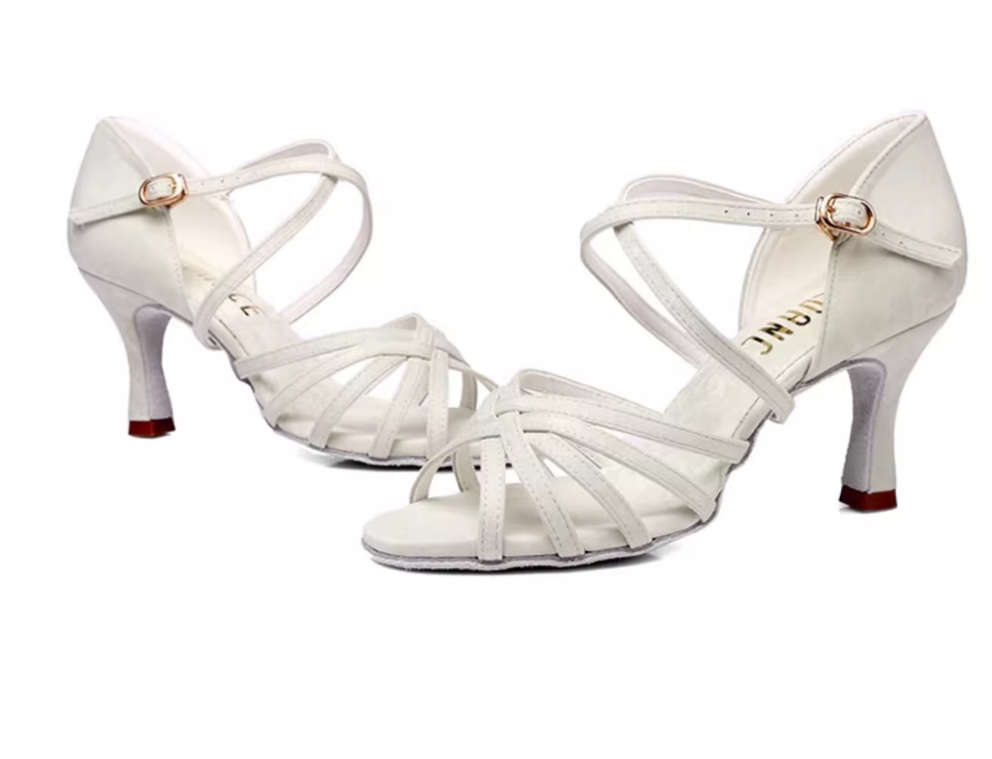 Women’s Latin Dance Shoes – PU Cross-Strap Design, High Heel 5.5–8cm, Suede Sole Ballroom Performance Heels